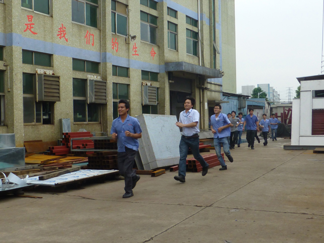 2014年4月26日17點(diǎn)整,消防警鈴響起,義務(wù)消防隊(duì)疏散組成員在第一時(shí)間分別趕到公司辦公樓各樓層以及宿舍內(nèi),在他們的喊話提醒下將所有員工于120秒內(nèi)有序地疏散到廠外的安全區(qū)域,在整個(gè)過(guò)程中,秩序井然、無(wú)人員受傷和擁擠踩踏的情況。要知道此次逃生演習(xí)的過(guò)程員工是不知情的,僅疏散組成員提前開會(huì)討論過(guò)。逃生演習(xí)拉開了此次消防演習(xí)的序幕。