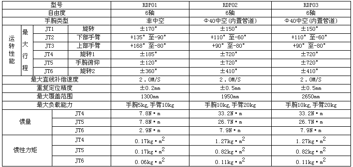 三、榮德噴涂機(jī)器人的技術(shù)參數(shù)