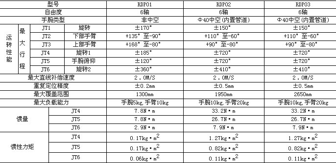 三、榮德噴涂機器人的技術(shù)參數(shù)