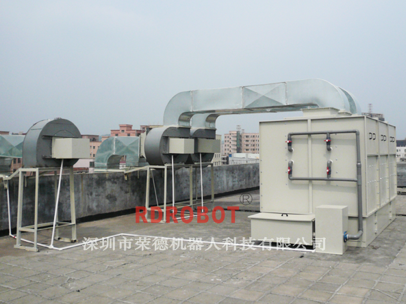 (1)廢氣處理設(shè)備設(shè)計(jì)成2套,一套處理噴涂倉(cāng)的廢氣,一套處理涂層干燥、固化過(guò)程中產(chǎn)生的廢氣,設(shè)備放置在噴涂間頂上。