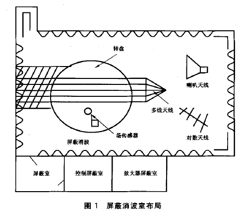 為 了 測 試操作者的安全,操作者必須被保護起來避免受到試驗場所產生的高頻和高強度電磁場的傷害。即便是在人員稀少的鄉(xiāng)村,開闊場地是可以接受的,但若受法律限制,至少需要一個屏蔽室。由 屏 蔽 室改造的,具有部分隔襯的屏蔽室,是使用一定數(shù)量的能吸收射頻(RF)的材料來抑制無隔襯屏蔽室的主諧波。假如能建立一個均勻場,進行的輻射抗擾性測試就可得到承認。另 一 方 面,考慮到機器人的尺寸,在對機器人進行輻射抗擾性測試期間,要達到一個較好的均勻場,推薦使用屏蔽消波室。即使局部隔襯的屏蔽室沒有消波室那么寬敞。圖 1 給 出了一個適合進行機器人 EMC測試的屏蔽消波室的布局。除消波室之外,在機器人輻射抗擾性測試期間,一些鄰近的屏蔽室通常用于放置與機器人相關的測試儀器和設備。另 外 ,使 用適當?shù)奶炀€(即多股的傳輸線)和采用適當?shù)臏y試設備可改善電磁場的均勻性。