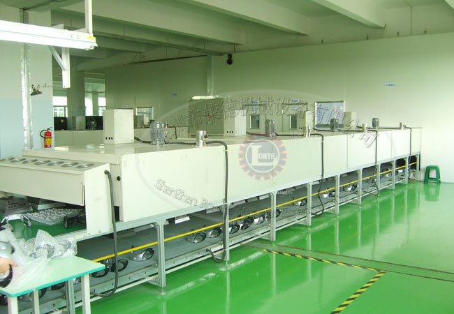 噴漆烘干流水線技術(shù)優(yōu)勢(shì):該裝置反射鏡采用聚光型冷鏡,燈下加裝石英玻璃板,可有效降低被照物表面溫度;變頻無(wú)級(jí)調(diào)速,保證傳送平穩(wěn);觸摸屏微電腦自動(dòng)控制,實(shí)現(xiàn)人機(jī)對(duì)話;每套UV系統(tǒng)獨(dú)立控制,依生產(chǎn)開啟燈管數(shù)量;每支燈設(shè)累計(jì)工作計(jì)時(shí)器,方便掌握燈管工作時(shí)間和老化程度;透明視窗,工作時(shí)可以觀察固化燈工作情況,并設(shè)開門保護(hù)裝置;燈管及燈罩可以上下調(diào)整。